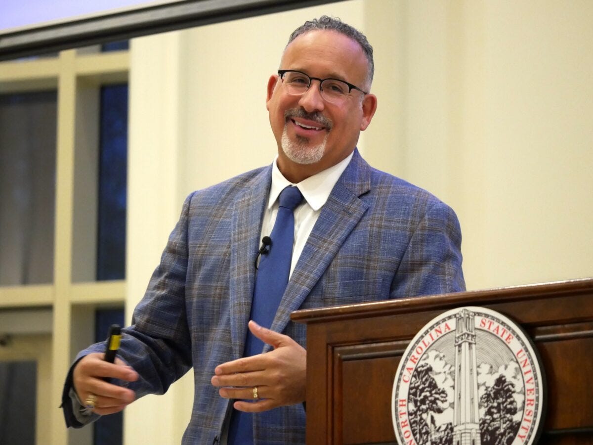 In the photo above, Dr. Miguel Cardona, who served as the 12th U.S. Secretary of Education under President Biden, is speaking to a large room of educators at NC State about multilingual learning in public schools. In the audience were faculty, education students, public school teachers, and community members who understand both the challenges and rewards of the classroom. Here I am with my colleague, Professor of History David Ambaras: